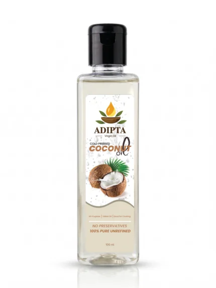 Adipta Cold Pressed Coconut Oil (500ml) – pure, fresh, and multi-purpose. Extracted from natural coconuts to preserve nutrients and deliver lasting freshness for both kitchen and care.