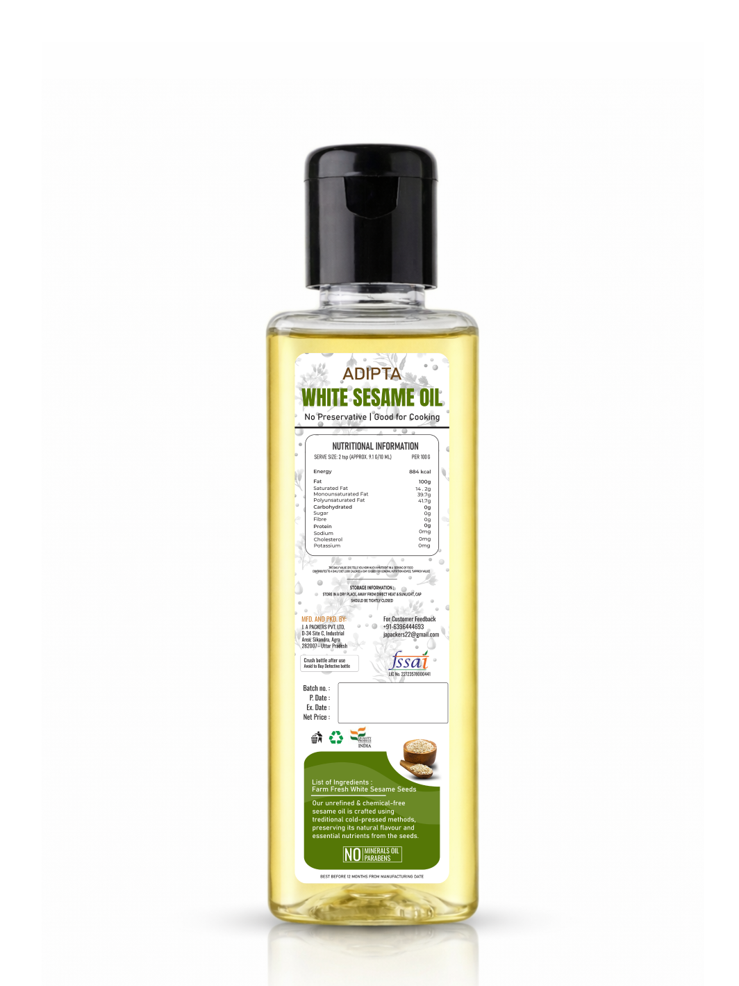 Bring home the natural richness of Cold Pressed Sesame Oil (100ml) – carefully extracted from high-quality sesame seeds using the traditional cold-press method to retain its nutrients, aroma, and authentic flavor. Free from chemicals, preservatives, and additives, this oil is packed with antioxidants and healthy fats that support heart health and overall well-being. Perfect for cooking, seasoning, or drizzling over dishes, it adds a distinct nutty taste and wholesome goodness to every meal. Hygienically packed to ensure purity and freshness, Cold Pressed Sesame Oil is a perfect addition to your healthy kitchen.